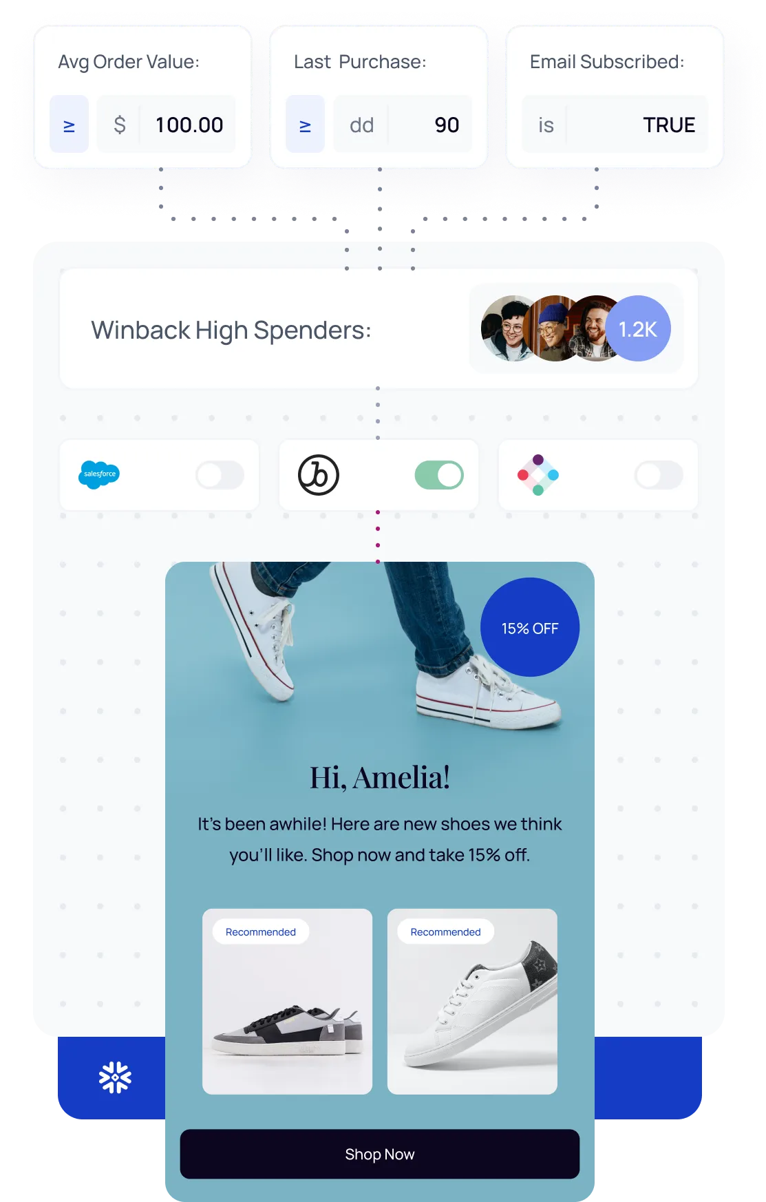 Create precise audiences and sync them to your marketing channels in minutes so you can focus on optimizing campaigns, not shipping them.